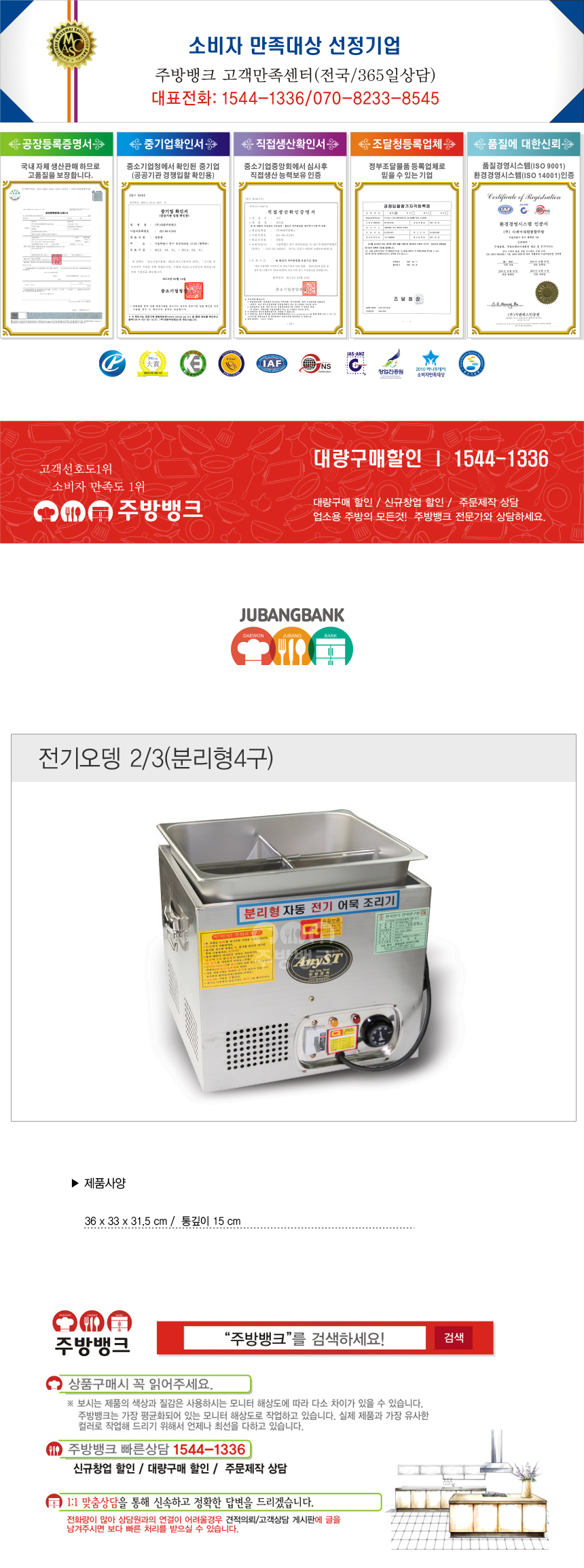 | 사이즈 | 가로 x 세로 x 높이 cm 36 x 33 x 31.5 cm / 통깊이 15 cm * 2/3(분리형4구) ※ 사이즈는 측정 방식에 따라 약간의 오차가 있을 수 있습니다. ※ 모니터에 따라 약간의 색상 차이가 있을 수 있습니다. ※ 상기 이미지는 실제와 다를 수 있으며, 제품은 사정에 따라 외관, 사양 등 제품의 성능 및 개선을 위하여 사전예고 없이 변경될 수 있습니다. |