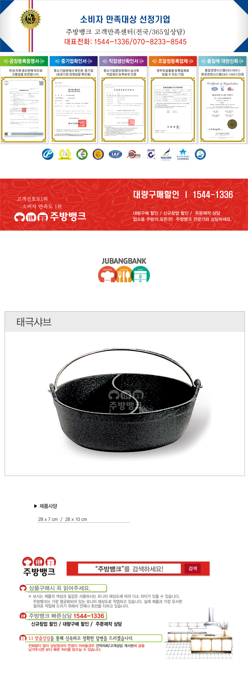 2) 구매자 사정으로 교환이나 환불을 할 경우 왕복 배송료는 구매자 부담이며, 상품에 하자 및 오배송이 된 경우에는 왕복배송료를 주방뱅크에서 부담합니다.