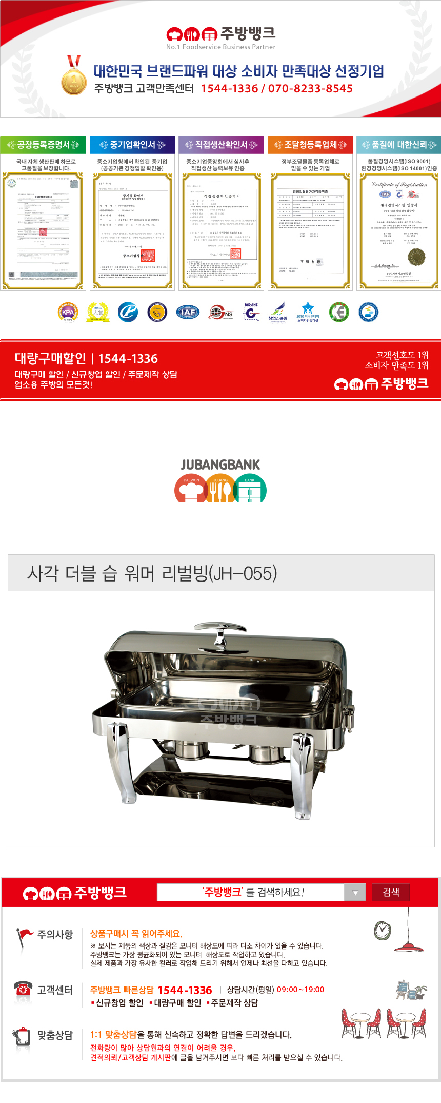 2) 구매자 사정으로 교환이나 환불을 할 경우 왕복 배송료는 구매자 부담이며, 상품에 하자 및 오배송이 된 경우에는 왕복배송료를 주방뱅크에서 부담합니다.