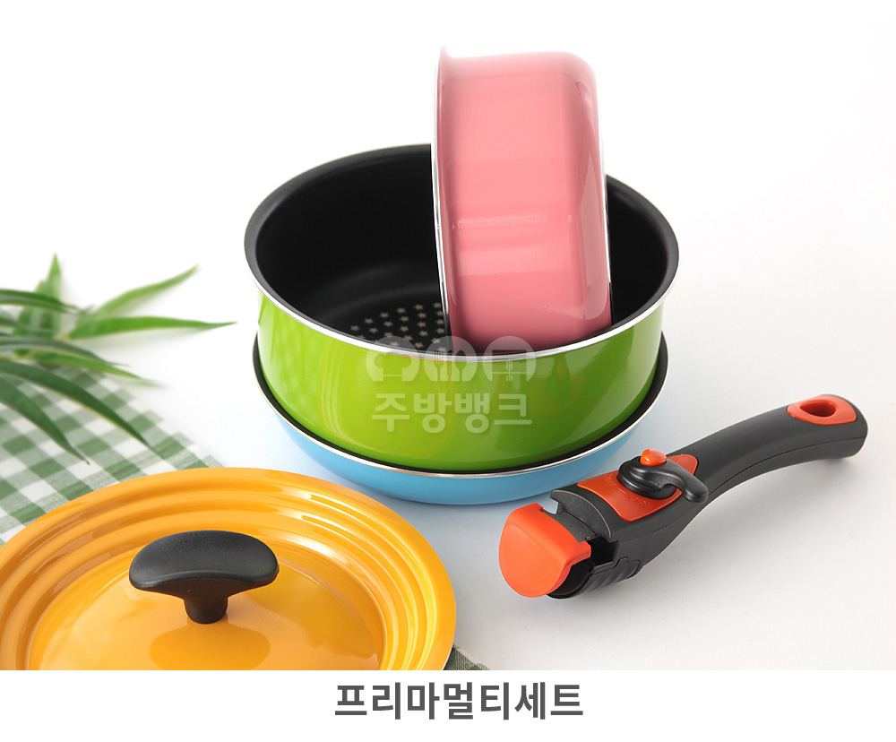 냄비 2개, 후라이팬, 멀티뚜껑, 손잡이로 구성되어 있고요.
