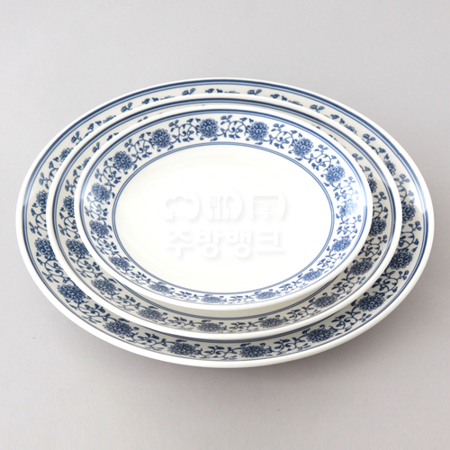 파란 꽃무늬가 테두리로 장식되어있는 중식용으로 나온 멜라민 시리즈!
