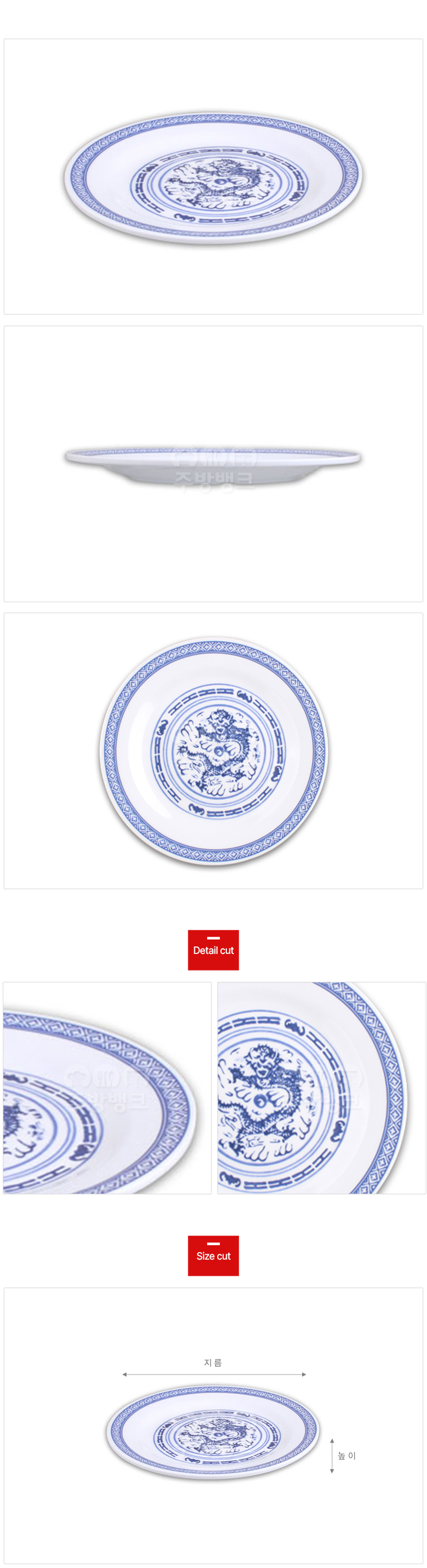 | 사이즈 | 가로×세로×높이(cm) (DS-4054) 청룡 원형접시 6인치 : 15.5x1.5cm (DS-4055) 청룡 원형접시 7인치 : 17.5x2cm (DS-4056) 청룡 원형접시 8인치 : 20x2cm (DS-4057) 청룡 원형접시 9인치 : 22.5x2cm (DS-4058) 청룡 원형접시 10인치 : 25x2cm |