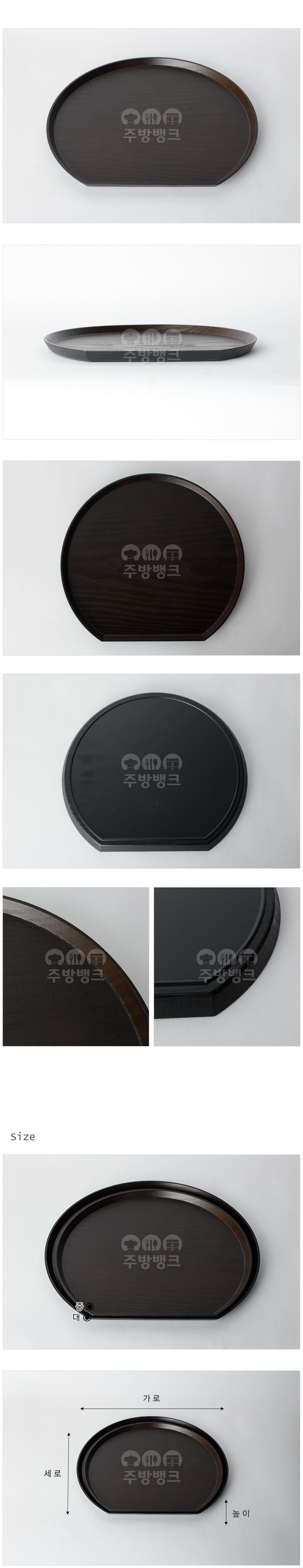| 사이즈 | 가로×세로×높이(cm) 반원쟁반 (중) 브라운 : 39.7x36.8x1.8cm 반원쟁반 (대) 브라운 : 35.8x32.8x1.8cm |