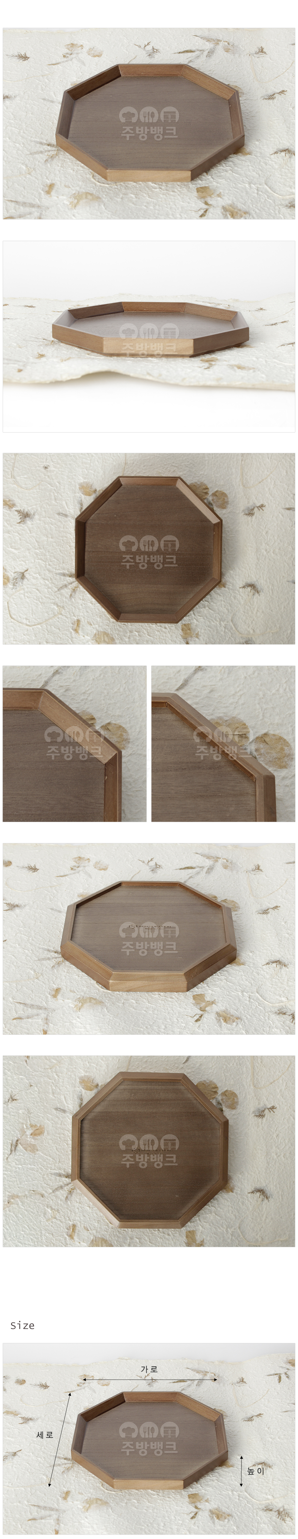 | 사이즈 | 가로×세로×높이(cm) 엔틱 팔각정쟁반 1호 : 25x25x2.3cm 엔틱 팔각정쟁반 2호 : 30x30x2.3cm |